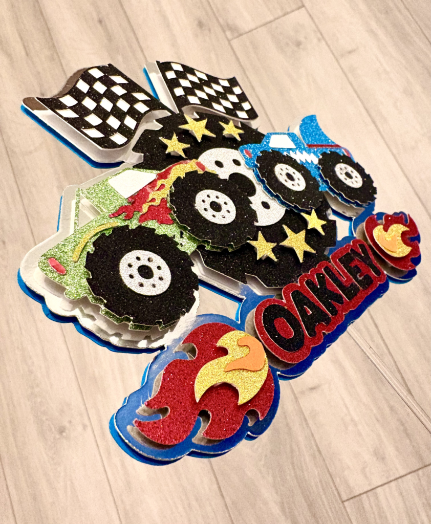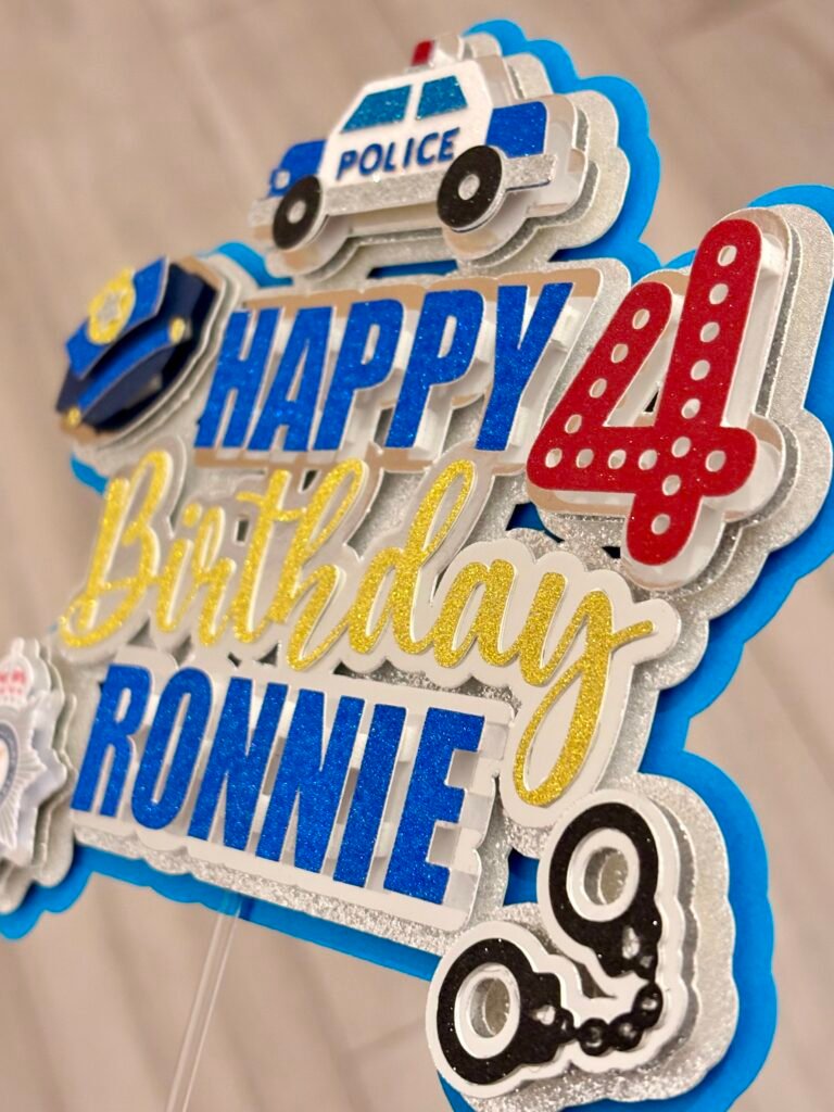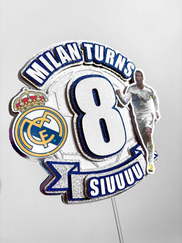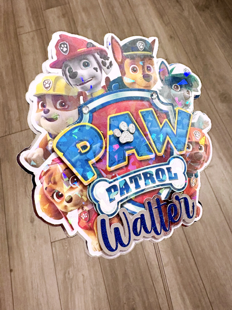 Our bespoke cake toppers are designed just for you using luxury mirror card, sparkling glitter card, vibrant printed images and holographic vinyl for that extra wow factor.