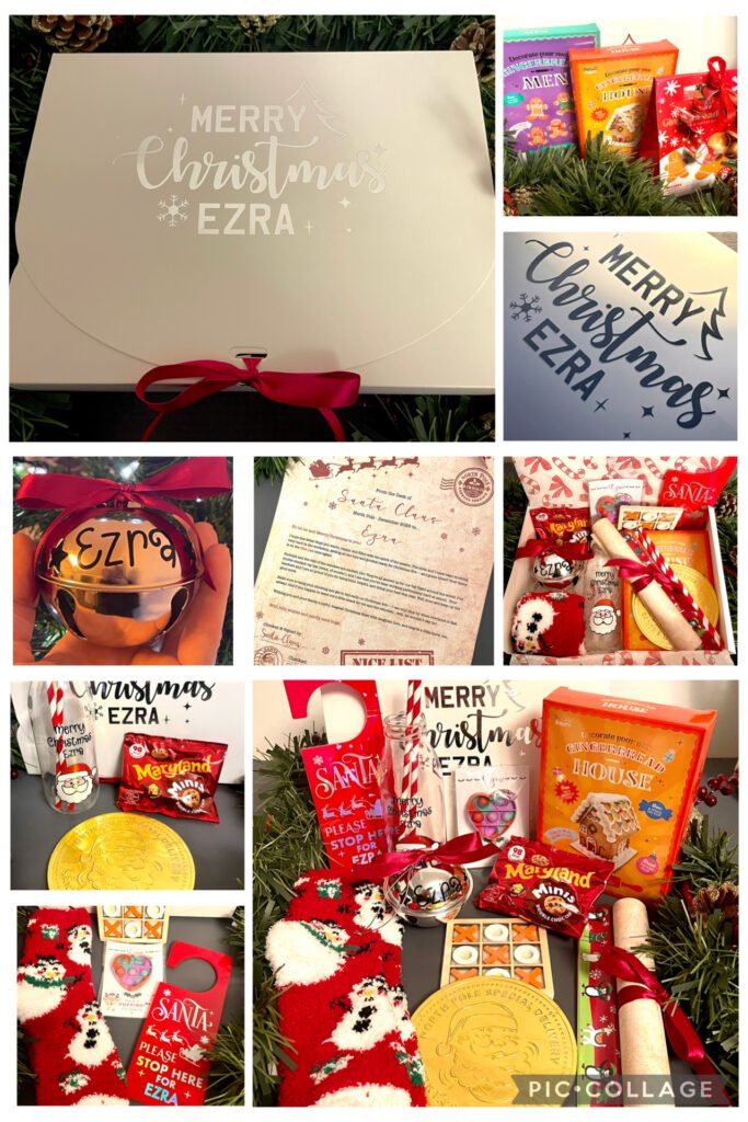Lots of different Christmas treats from Christmas eve plate bundles and treat boxes, to hanging tree decorations and pet baubles.